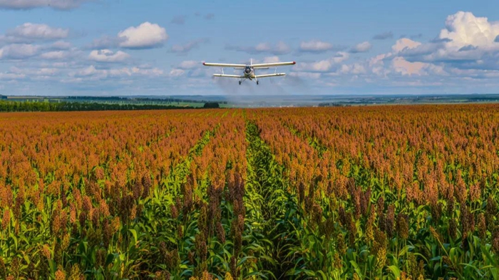 《插上科技的翅膀》 北大荒農墾集團九三分公司鶴山農場飛機植保作業。岳靜華 攝