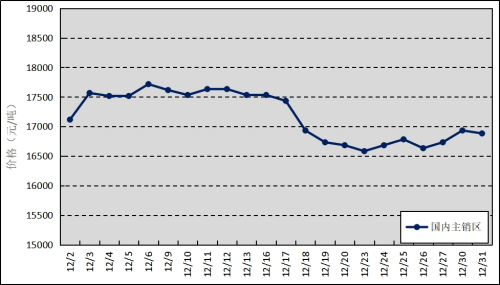國內主銷區:12月,上海、青島和天津等銷區市場的國產全乳標準膠平均價格為17179元/噸,環比上漲287元/噸,最高價為17717元/噸,最低價為16583元/噸。