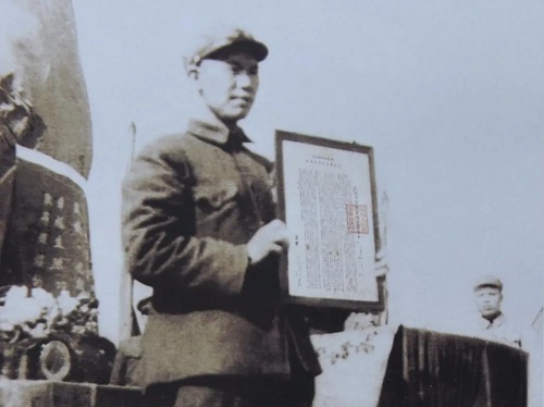 1952年4月20日上午8點,102師近萬余官兵正點到達海門縣三廠鎮廣場,在這里集結并舉行誓師大會。蘇北軍區副司令員常玉清,在師首長陪同下檢閱了部隊后,代表人民革命軍事委員會,向全師指戰員宣布毛澤東主席命令:“中國人民解放軍步兵第102師改編為農業建設第四師”。